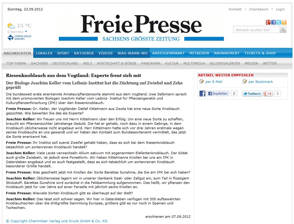 Freie Presse: Dr. Keller, der Vogtländer Detlef Kittelmann aus Zwota hat eine neue Sorte Knoblauch gezüchtet. Wie bewerten Sie das als Experte?